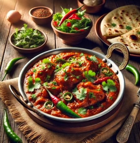 Kashmiri dish prepared with oriental spices to make a delicately flavoured sauce with a tinge of ginger, coriander, garlic, tomatoes and green pepper